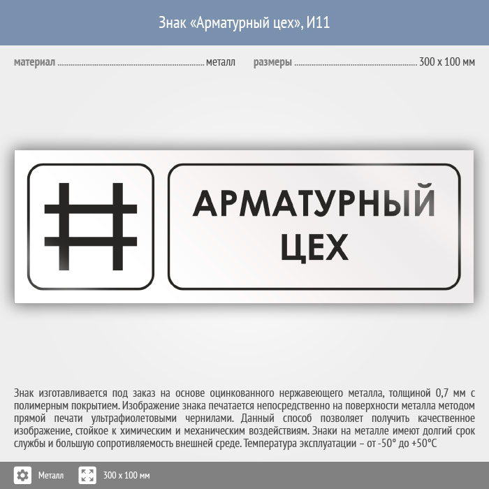 Знак «Арматурный цех», И11 (металл, 300х100 мм) в Яхроме купить