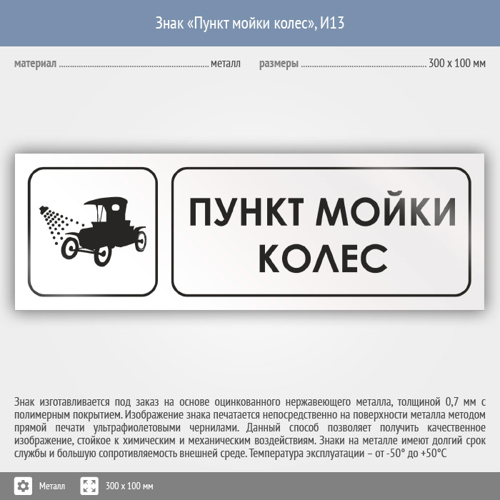 Знак «Пункт мойки колес», И13 (металл, 300х100 мм) в Яхроме купить