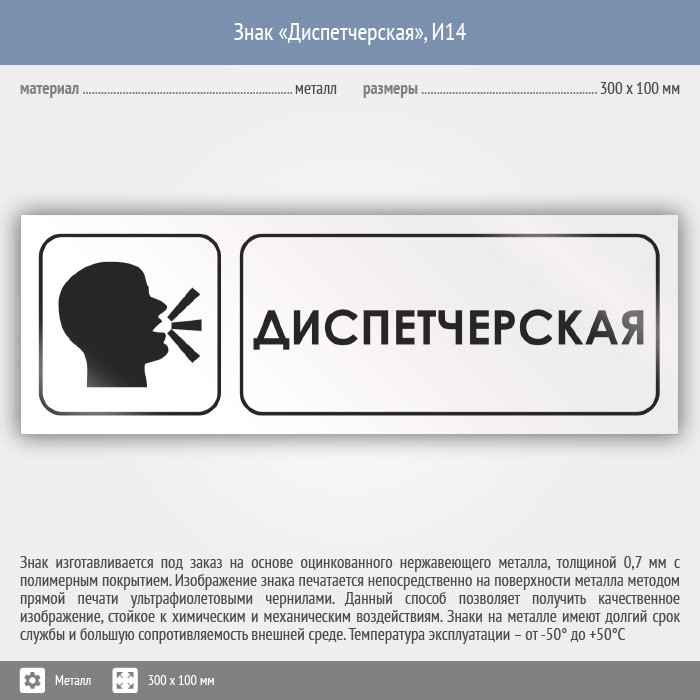 Знак «Диспетчерская», И14 (металл, 300х100 мм) в Яхроме купить