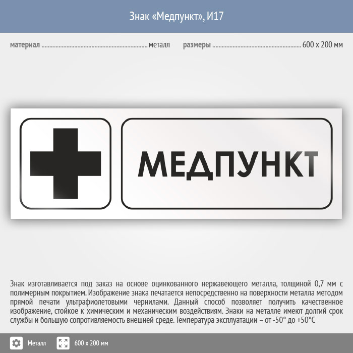 Знак «Медпункт», И17 (металл, 600х200 мм) в Яхроме купить