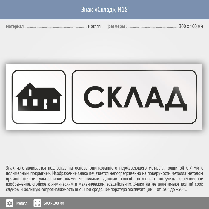 Знак «Склад», И18 (металл, 300х100 мм) в Яхроме купить