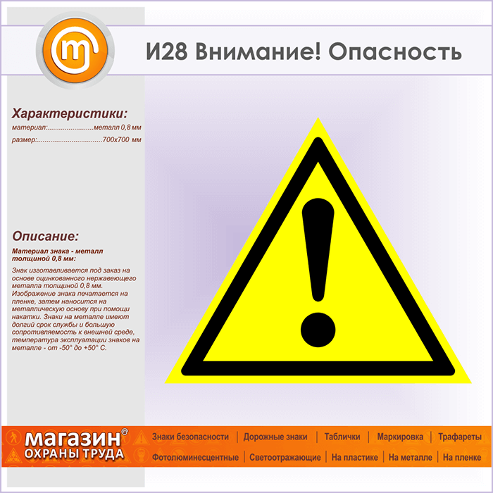 Знак «Внимание! Опасность», И28 (металл, сторона 700 мм) в Яхроме купить