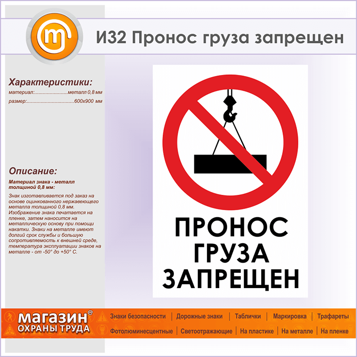 Знак «Пронос груза запрещен», И32 (металл, 600х900 мм) в Яхроме купить
