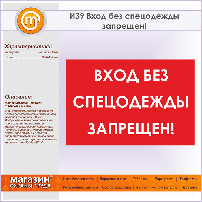 Знак «Вход без спецодежды запрещен!», И39 (металл, 600х400 мм) в Яхроме купить