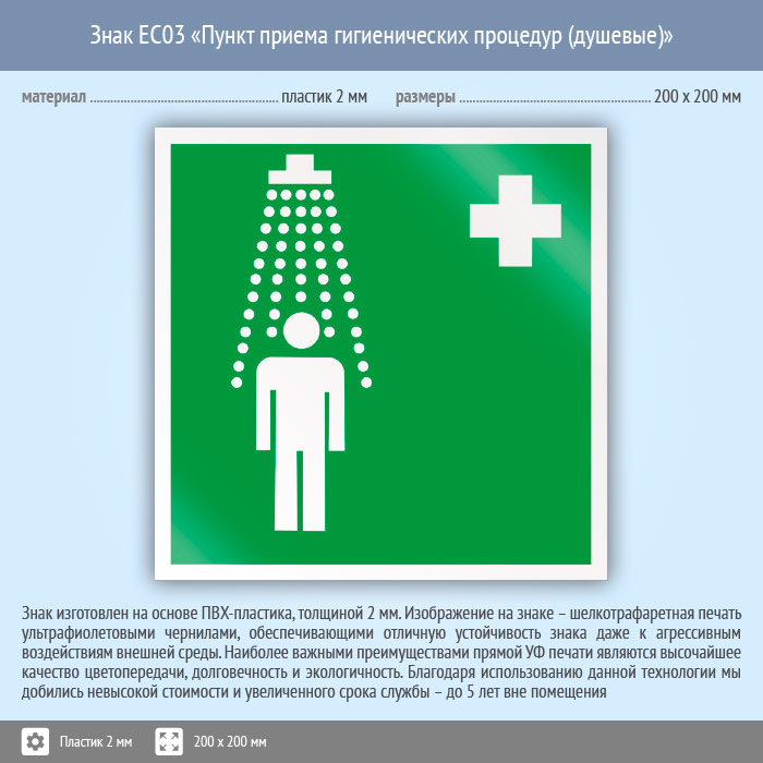 Знак EC03 «Пункт приема гигиенических процедур (душевые)» (пластик, 200х200 мм) в Яхроме купить