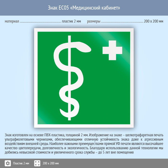 Знак EC05 «Медицинский кабинет» (пластик, 200х200 мм) в Яхроме купить