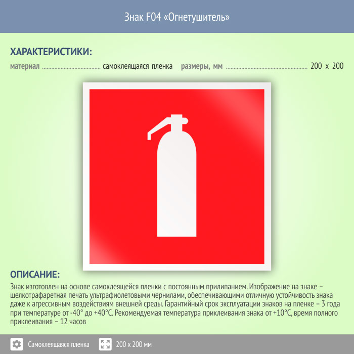 Знак F04 «Огнетушитель» (пленка, 150х150 мм) в Яхроме купить