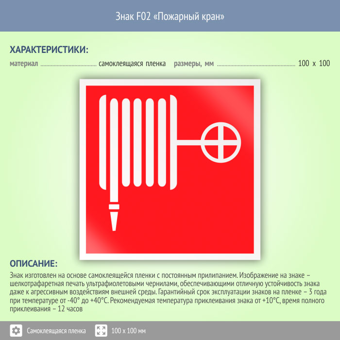 Знак F02 «Пожарный кран» (пленка, 100х100 мм) в Яхроме купить