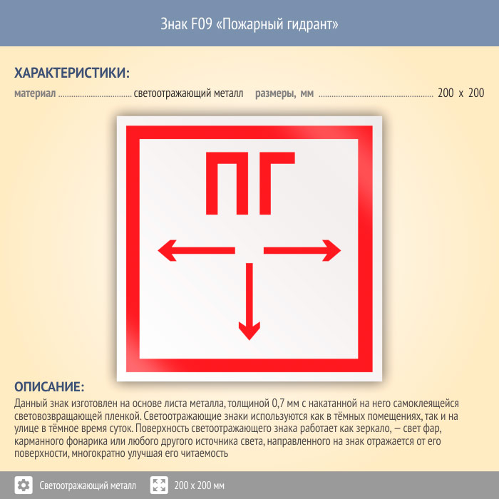 Знак F09 «Пожарный гидрант» (светоотражающий металл, 200х200 мм) в Яхроме купить