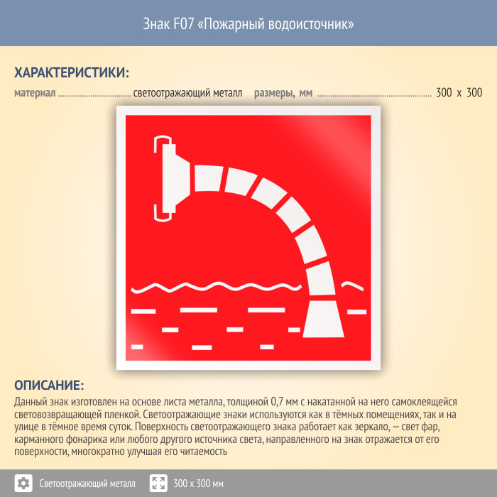 Знак F07 «Пожарный водоисточник» (светоотражающий металл, 300х300 мм) в Яхроме купить