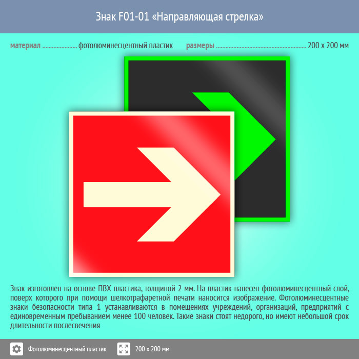 Знак F01-01 «Направляющая стрелка» (фотолюминесцентный пластик, 200х200 мм) в Яхроме купить