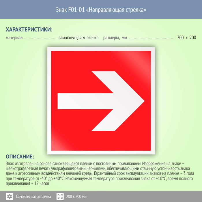 Знак F01-01 «Направляющая стрелка» (пленка, 200х200 мм) в Яхроме купить