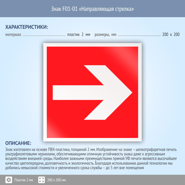 Знак F01-01 «Направляющая стрелка» (пластик, 200х200 мм) в Яхроме купить