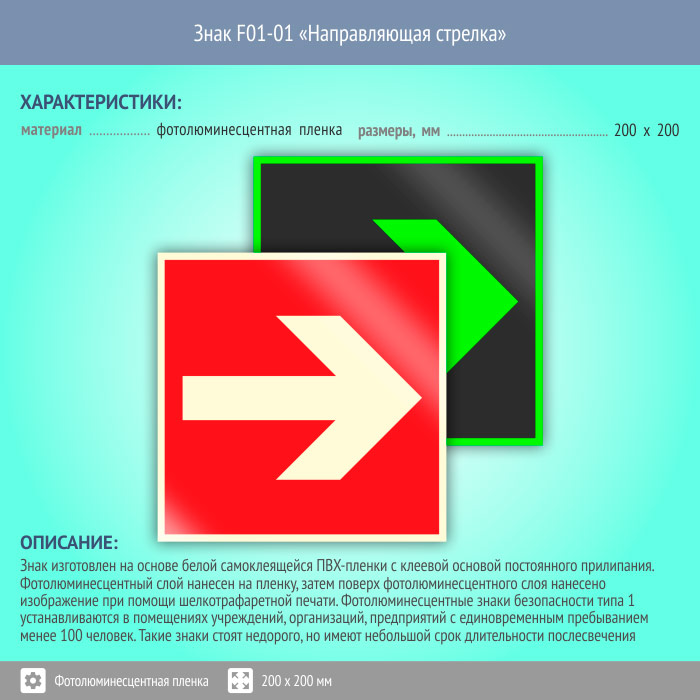Знак F01-01 «Направляющая стрелка» (фотолюминесцентная пленка, 200х200 мм) в Яхроме купить