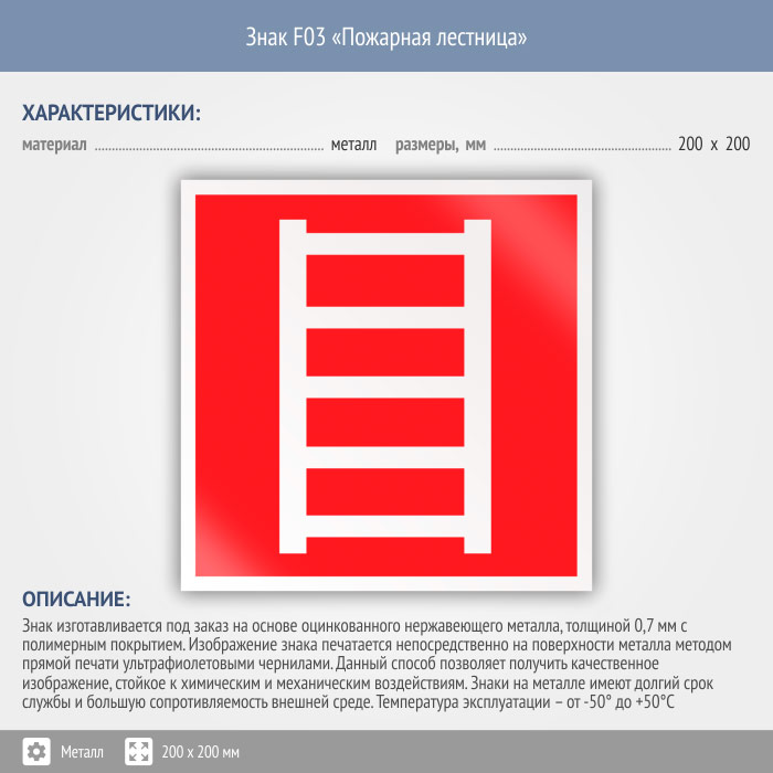 Знак F03 «Пожарная лестница» (металл, 200х200 мм) в Яхроме купить