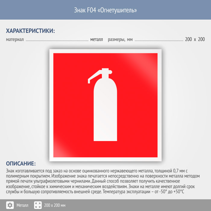 Знак F04 «Огнетушитель» (металл, 200х200 мм) в Яхроме купить