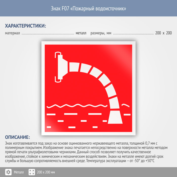 Знак F07 «Пожарный водоисточник» (металл, 200х200 мм) в Яхроме купить