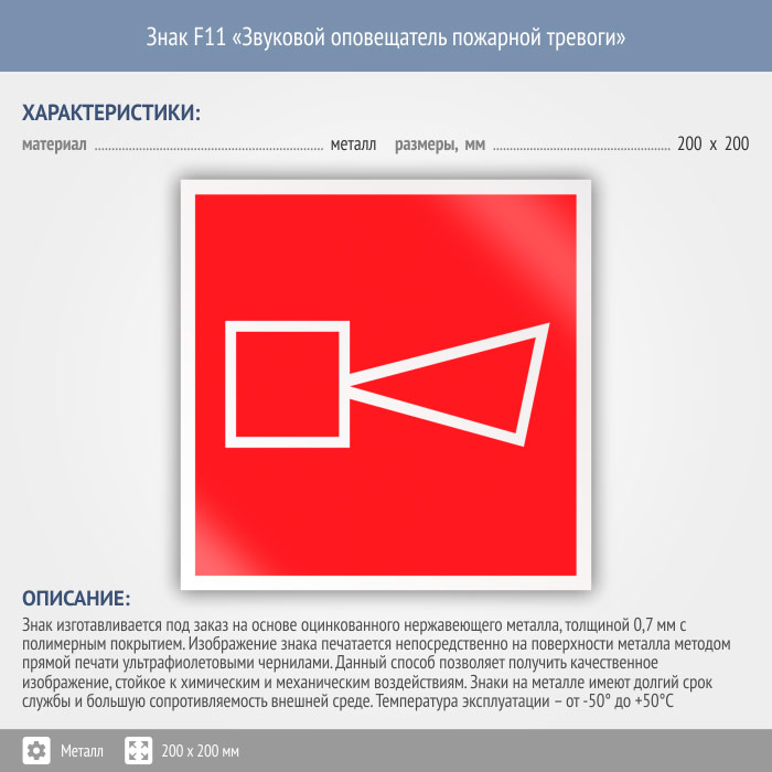 Знак F11 «Звуковой оповещатель пожарной тревоги» (металл, 200х200 мм) в Яхроме купить